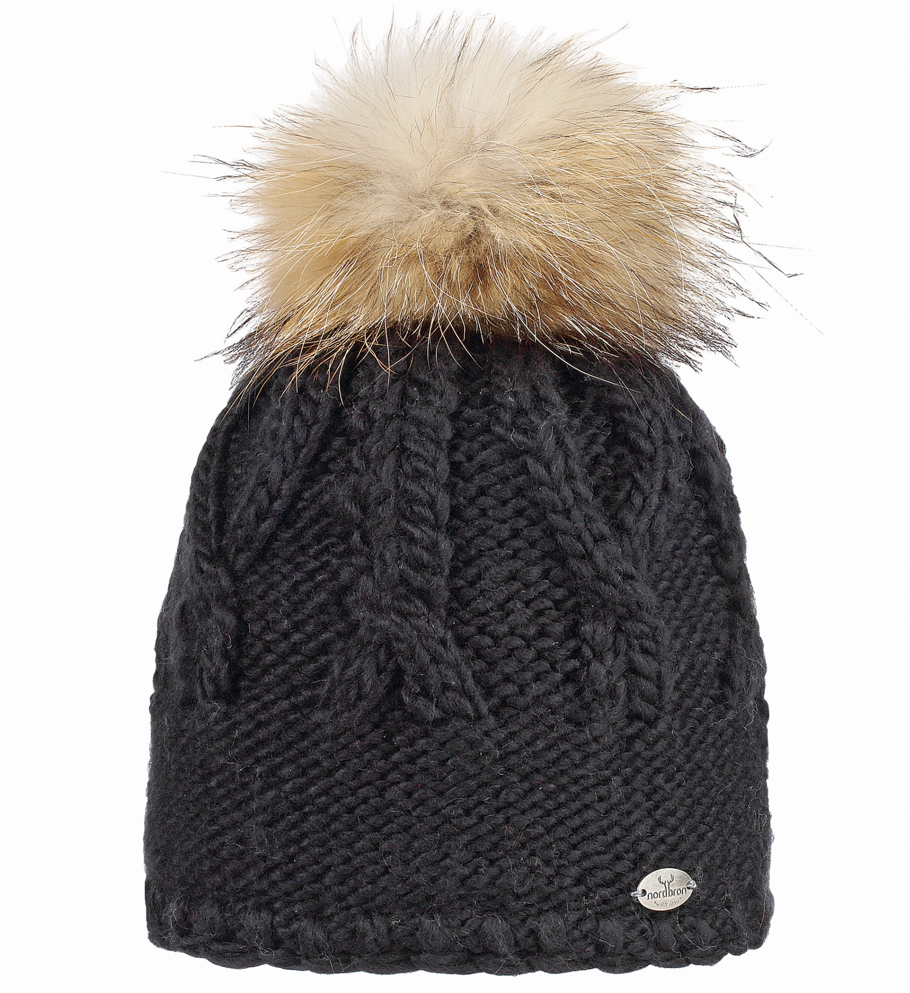Czapka renomowanej firmy akcesoryjnej NORDBRON, wykonana ręcznie z 100% akrylu. Podszewka w formie opaski wykonana z poliestru (fleece). Ozdobiona pomponem z naturalnego futra.