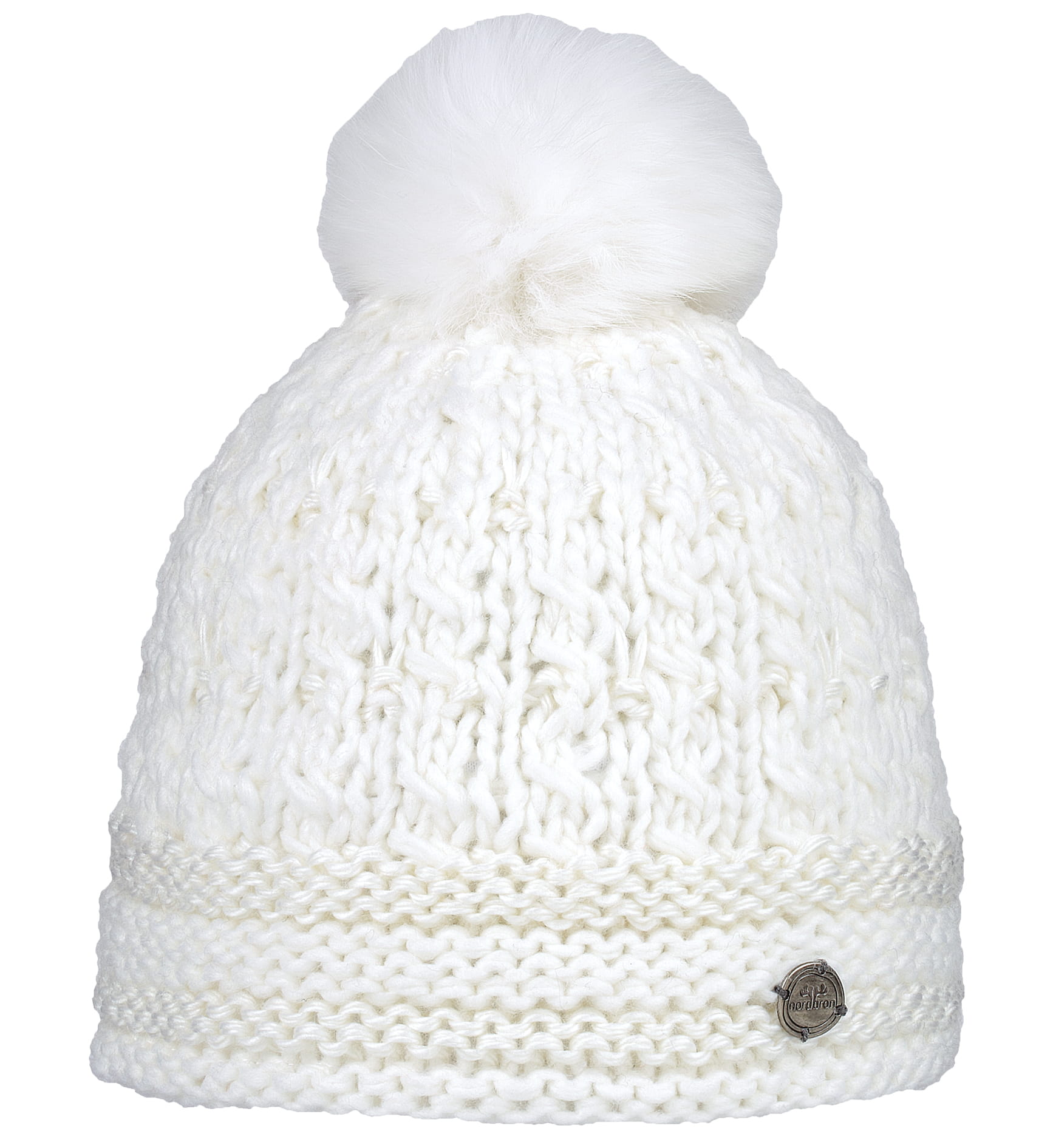 Czapka renomowanej firmy akcesoryjnej NORDBRON wykonana ręcznie z miękkiego akrylu 100%. Podszewka w formie opaski wykonana z poliestru (fleece). Pompon ze sztucznego futerka. Rozmiar 53-55 (od 4 lat wzwyż).