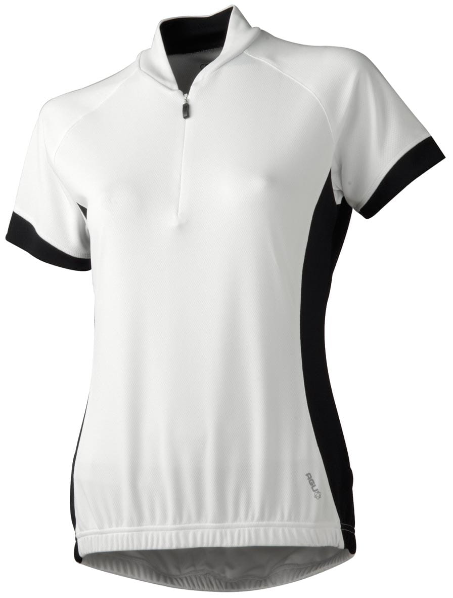 Damska koszulka rowerowa Amanta wykonana z technicznego matariału Coolfield (Odprowadza wilgoć z powierzchni skóry do wierzchniej warstwy odzieży. Bardzo komfortowy, idealnie dopasowuje się do ciała). Ukryty suwak z przodu koszulki. Trzy kieszenie z tyłu. Kolor biały. Rozmiar S.