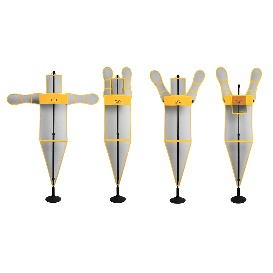 Ręce przypinane na rzep umożliwiają ustawienie w różnych pozycjach, co pozwala odwzorować realistyczne sytuacje obronne. Stabilna konstrukcja i niewielka waga zapewniają łatwe przenoszenie i szybkie przygotowanie do treningu.
