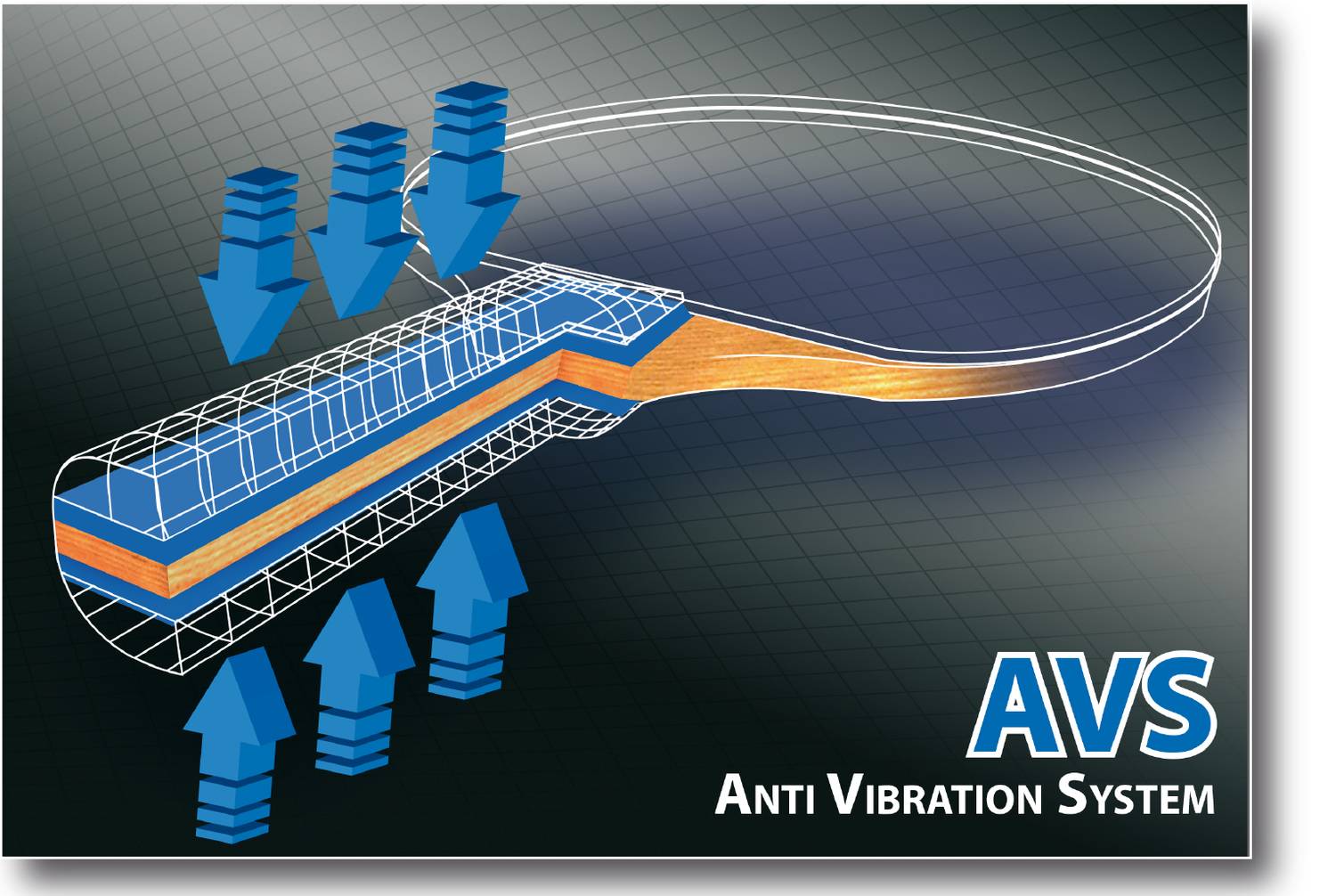 System antywibracyjny to system amortyzujący opracowany przez firmę Schildkröt. AVS oferuje lepszą kontrolę nad piłką i zredukowane wibracje spowodowane energią uderzenia piłki dzięki dwóm specjalnym amortyzującym, miękkim warstwom laminowanym w uchwycie rakietki. W rezultacie AVS zwiększa celność strzałów zarówno w obronnym, jak i ofensywnym stylu gry.