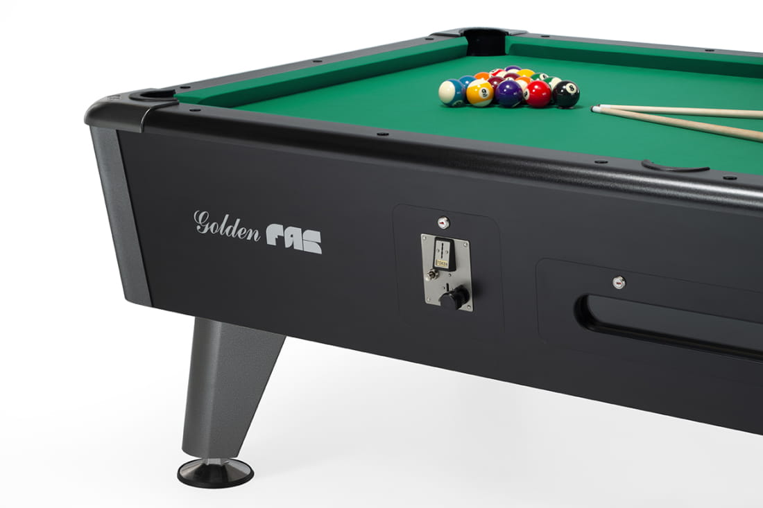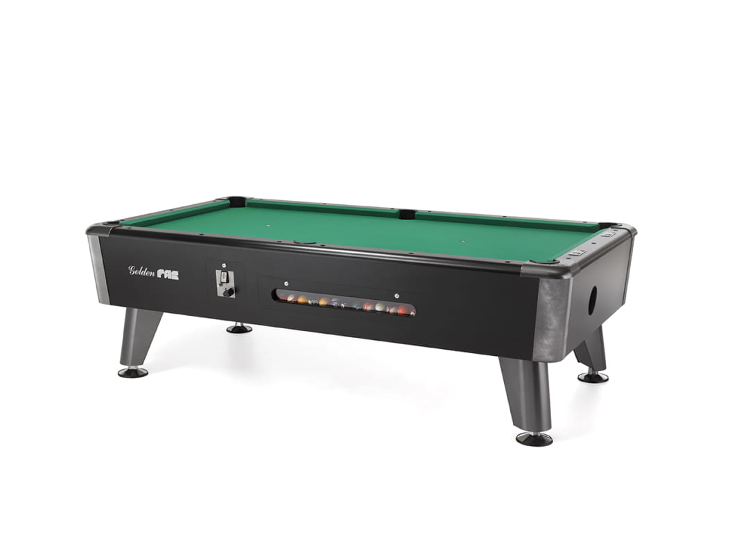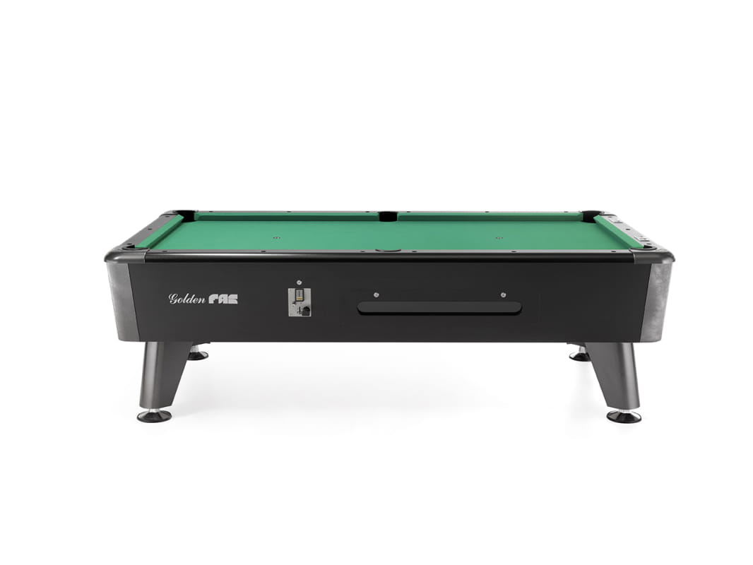 Ten elegancki stół bilardowy (amerykański stół bilardowy), profesjonalny model GOLDEN 7, jest przeznaczony specjalnie do sal bilardowych i ośrodków rekreacyjnych, ponieważ obsługuje monety / żetony. Jest wykonany z całego kawałka płyty kamiennej o grubości 19 mm, co gwarantuje maksymalną stabilność i jakość; dlatego model GOLDEN 7 jest najbardziej pożądanym modelem dla wszystkich publicznych miejsc rekreacyjnych.