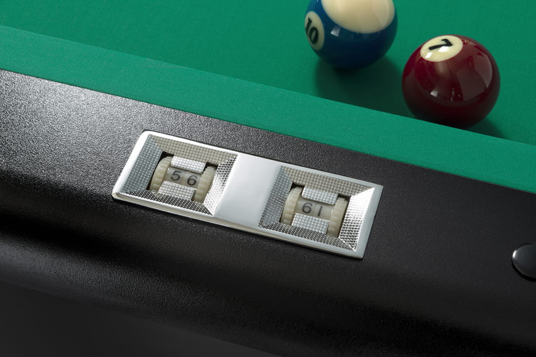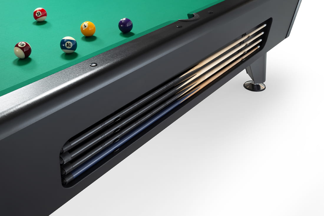 Wszystkie elementy wykończenia i szczegóły, które składają się na stół, są najwyższej jakości, a także materiał (baize), kije i cała gama akcesoriów są w stanie zaspokoić potrzeby najbardziej wymagających graczy.